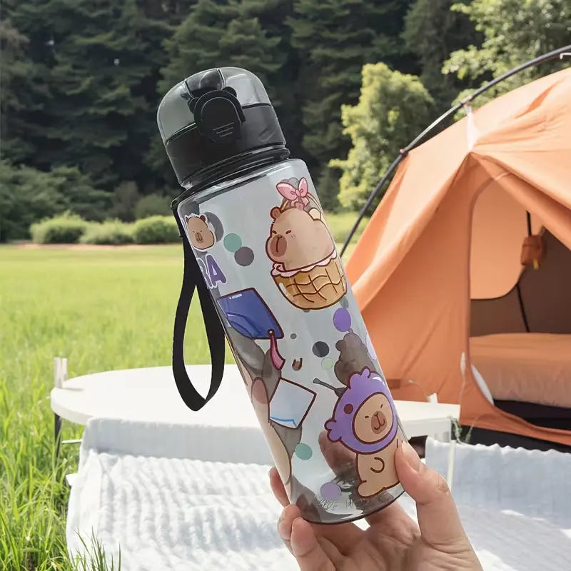 Gourde d’Eau Capybara Noir 750ml – Gourde Étanche avec Paille – Bouteille d’Eau Réutilisable Enfant & Adulte 🥤